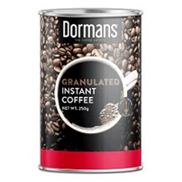 Dormans Coffee Ltd was founded by Charles and Ellen Dorman in 1950, and has grown to become East Africa's premier coffee roaster. We supply a diverse range of freshly roasted coffee blends to hotels, coffee-shops, supermarkets and wholesalers countrywide. The Dormans Coffee Group is Kenya?s leading coffee exporter and roaster, and a recognised quality brand. We source our coffees from only the best estates and cooperatives that sit on the fertile and volcanic soils of the East African region, giving rise to coffees that are renowned worldwide Dormans-Instant-Granulated-Coffee-Supreme-Tin-250-g is a blend of the finest AA beans grown in Kenya, which historically came from the Blue Mountain variety which was introduced to Kenya over a century ago in 1913.From the cup you can expect a full bodied cup featuring bright acidity with a fragrance of ripe fruits and nuts and heavy chocolate nuances with a long lingering rich aftertaste.The aroma is the first quality that is perceived in Dormans-Instant-Granulated-Coffee-Supreme-Tin-250-g when you smell the sample. It is composed of a large number of substances and can be classified as sweet, earthy, chemical, pronounced, high and typical of coffee. The bitter is a characteristic of Dormans-Instant-Granulated-Coffee-Supreme-Tin-250-g is due to its chemical composition. It is desirable to a moderate degree in Dormans presenting a bitter taste in this species.