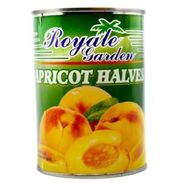 Royale Garden Apricot Halves 425g is made of real Apricots. Sulfur dioxide added for color retention and as a preservative. May contain pits or pit fragments